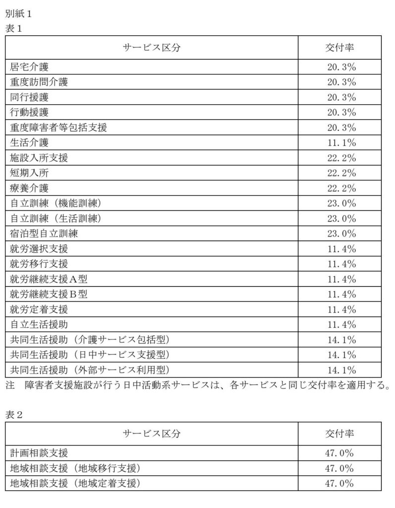 なお、その他対象サービスに関しては交付率はサービスごとに一律です。